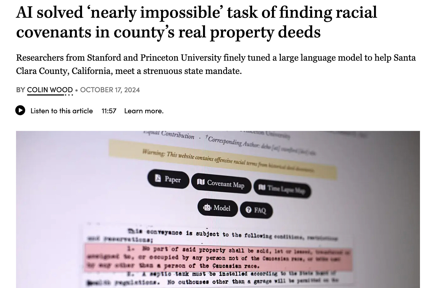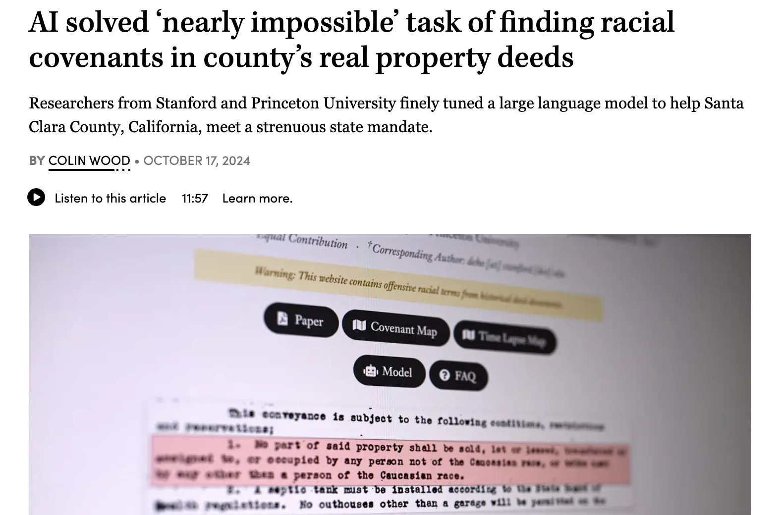 People are already accomplishing amazing things with AI. For instance, identifying all of the illegal racial covenants in an entire county by sifting through 84 million pages of property records in a few days, exporting data from a set of email messages by simply recording a movie of the computer screen, and writing 25% of all new code at Google4. The models are going to keep getting better – from OpenAI alone, we don’t yet have the final release of o1, and GPT-5 and o2 both appear to be in the pipeline. Equally important, we are still in the early days of figuring out how to make practical use of the AI models we already have. If foundation model development stopped today, we’d be a decade finding all the applications5. Even in this pre-AGI stage, AI will have a larger impact than many people realize.